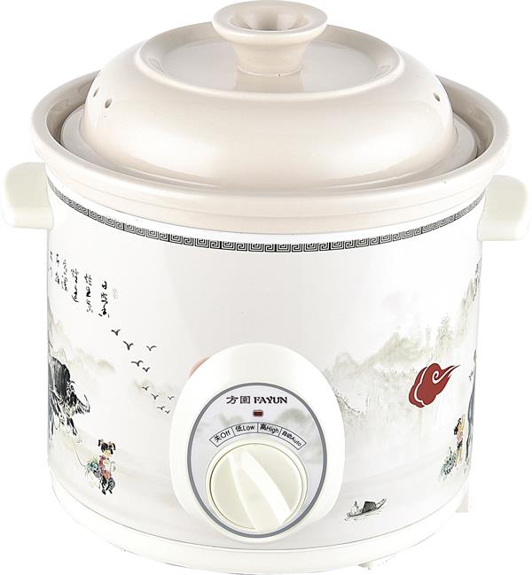 2、高品质陶瓷内胆,陶瓷盖子最新设计的透气孔,可以避免煲汤煲粥时溢锅。
